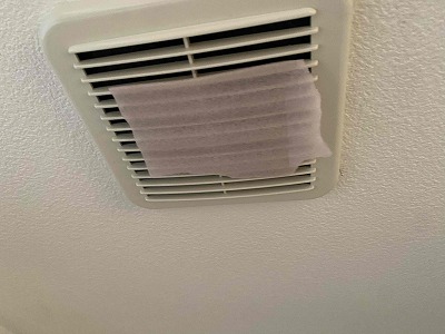 洗面所とトイレの吸気用ダクト(真ん中と向かって左側)