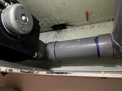 塩ビ管ですので自由がなく途中で切断をしてダクトを
