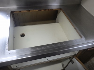 後日、レンジフード本体の下の隙間部分に板を設置します。