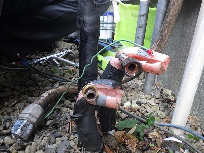 試運転をして何も問題がなかったので配管に保温材をつけて