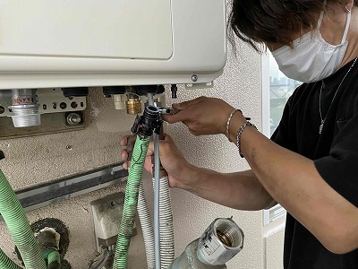 新しい給湯器を設置してから配管の接続面を綺麗にして