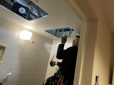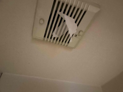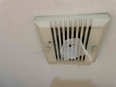 洗面所とトイレの換気は通路の天井内に中間ダクトファン