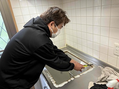 ガスコックを開けてガス漏れ確認をします。