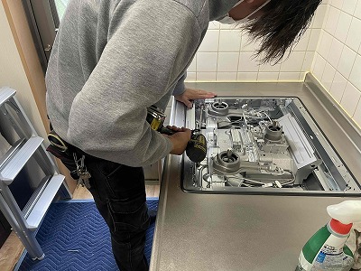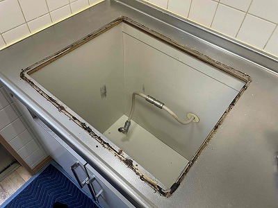 ガス配管を外したら、ガスコンロ本体を撤去します。