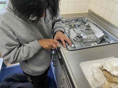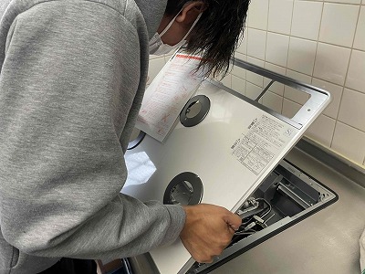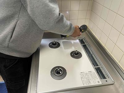 新しいガスコンロを取り付けます。