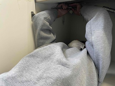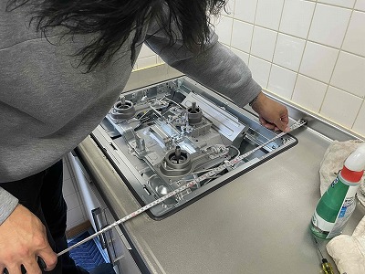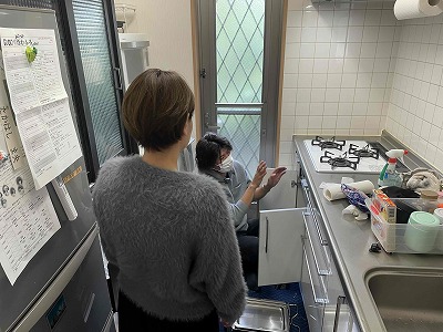 グリル部の部材をセットするときに奥様にご説明をさせて