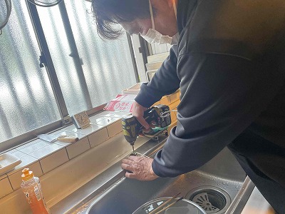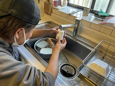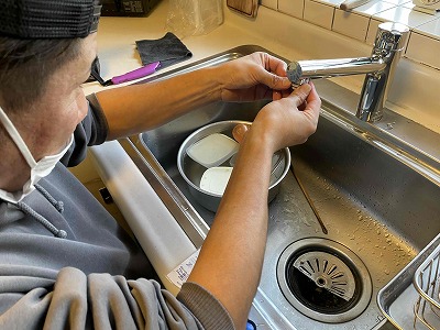 新しい水栓金具の吐水口に浄水器を取り付けるために