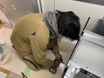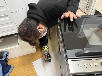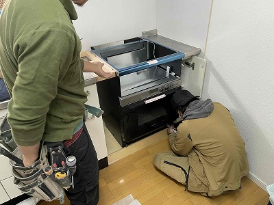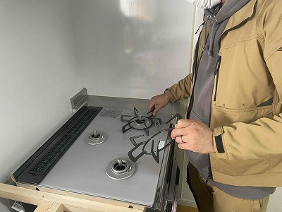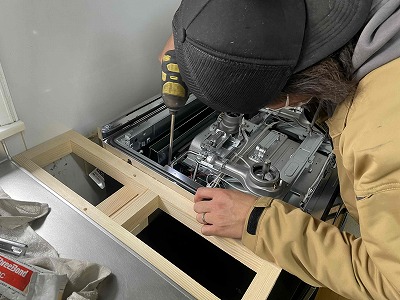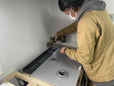 何も問題が無かったのでガスコンロを天板を取り付けます。