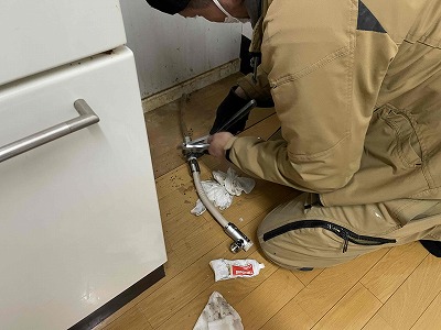 先ずはガスコックを閉めて 冷蔵庫を移動してから作業を
