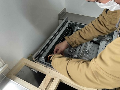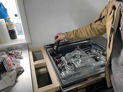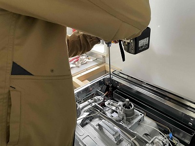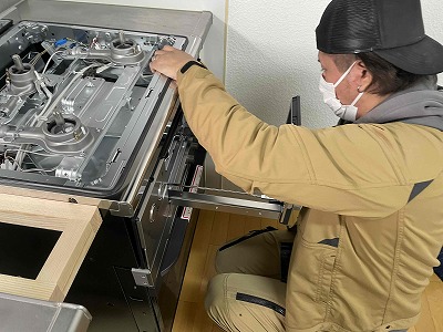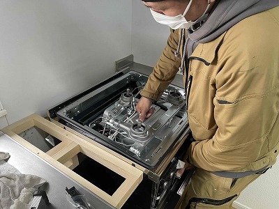 ガスコンロの天板を外して電源を抜いて、ガス配管も