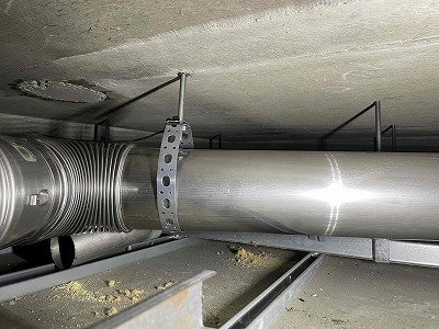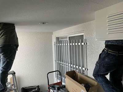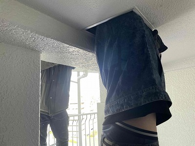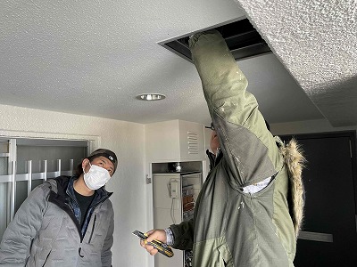 聖太と美尾くんは点検口の上の軽天をずらして給排気ダクト