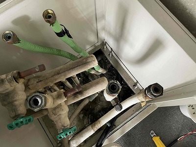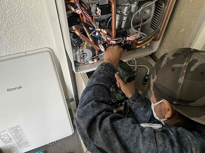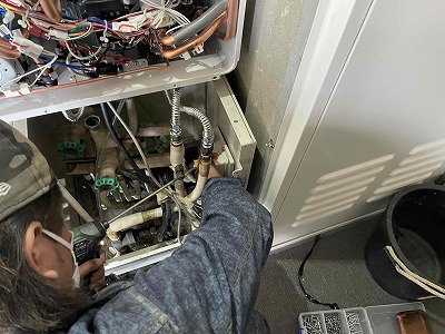 僕はせっせと給湯器の配管を外して、給排気ダクトも