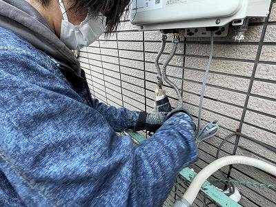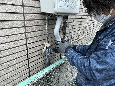電源を抜いて止水栓・ガスコックを閉めてから配管を