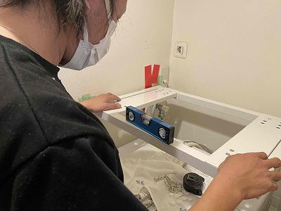 前後左右の水平を確認しながら設置をします。