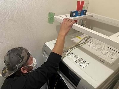 衣類乾燥機を乗せる部分を取り付けます。