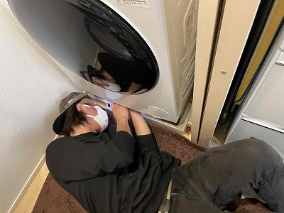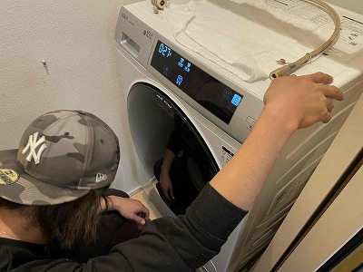 ここで洗濯機を試運転させていただき正常に作動するか?