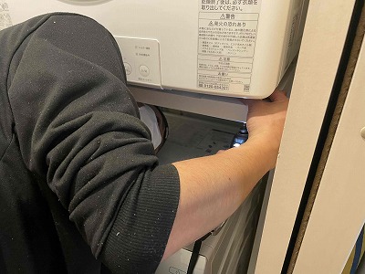 衣類乾燥機本体~専用架台を取り外します。