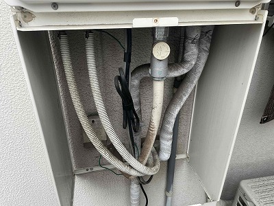 配管カバーの天板を外して、追い炊き配管の行と戻りを