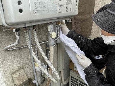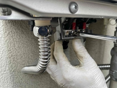 配管を接続したら止水栓・ガスコックを開けて漏れが