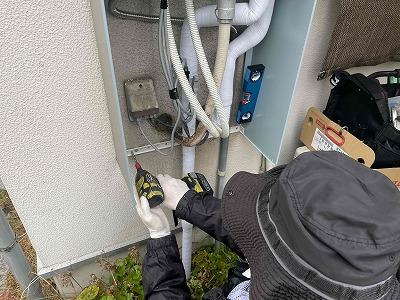 ここで外の作業に合流して、給湯器を固定していたビス穴