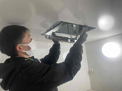浴室乾燥暖房本体を取り付けます。