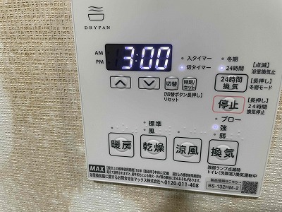 浴室乾燥暖房機は二室換気となります。