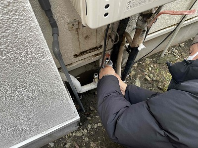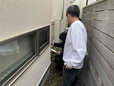 ご主人様に外での作業をご説明させていただき、水漏れ