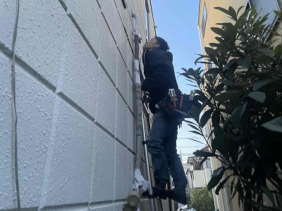 聖太と友哉くんは室外機の撤去と外壁に這っている配管