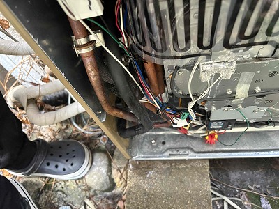 給湯器内部も大分濡れていて劣化(錆が・・・)