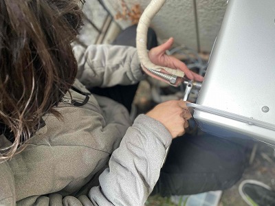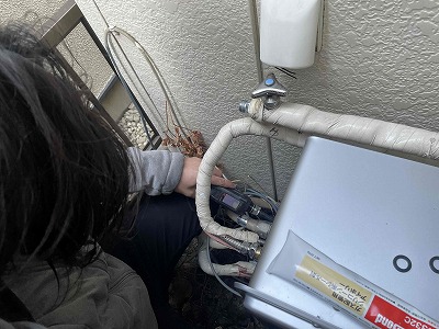 電源を抜いて、追い炊き配管の行と戻りを確認してから