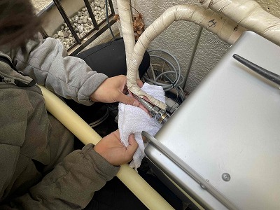 ここで給水管・給湯管は新たに保温材をつけて保温テープ
