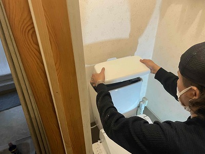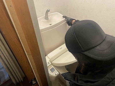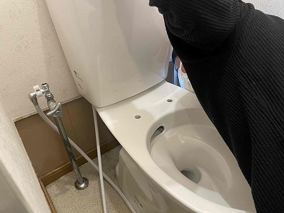 タンクと便器の間・排水部と確認をします。