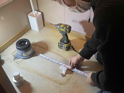 フランジを設置したら、型紙を当てて前部分の固定部材を