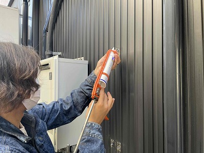 給湯器本体を撤去して固定してあったビス穴をコーキング