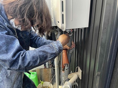 電源を抜いて、止水栓・ガスコックを閉めてから配管を