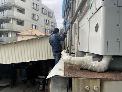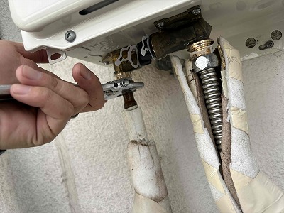 給湯器本体を撤去したら、配管の接続面をお掃除して
