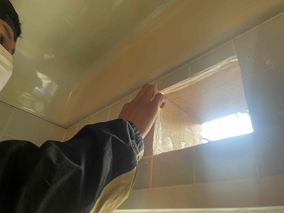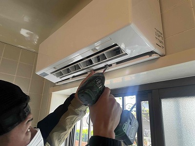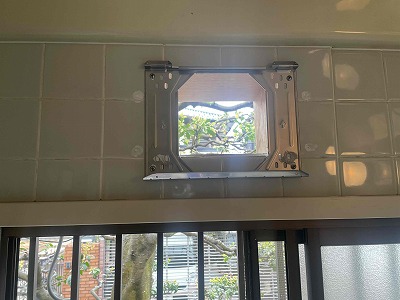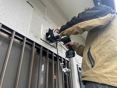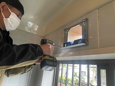 浴室乾燥暖房機本体を設置してビスで固定します。